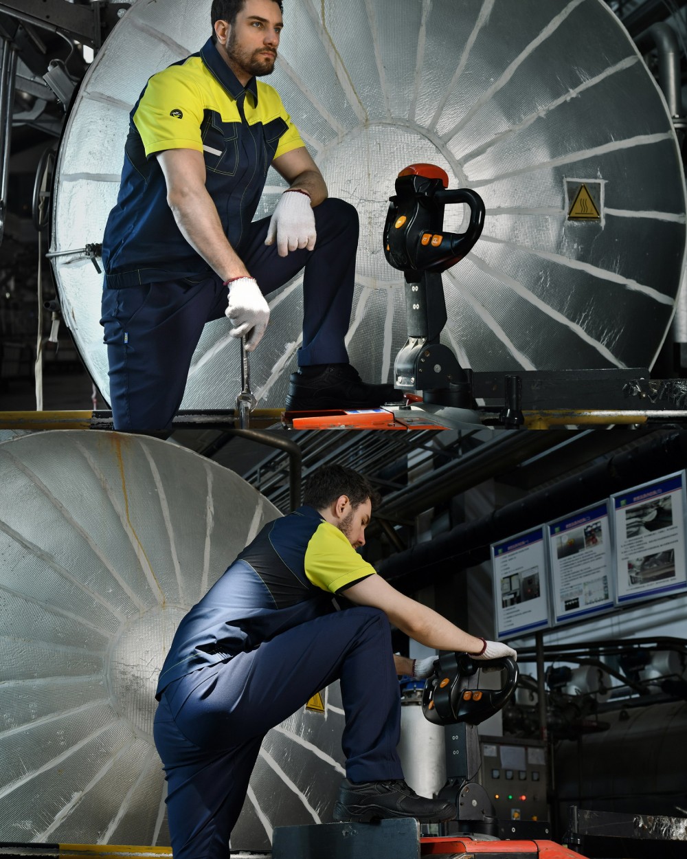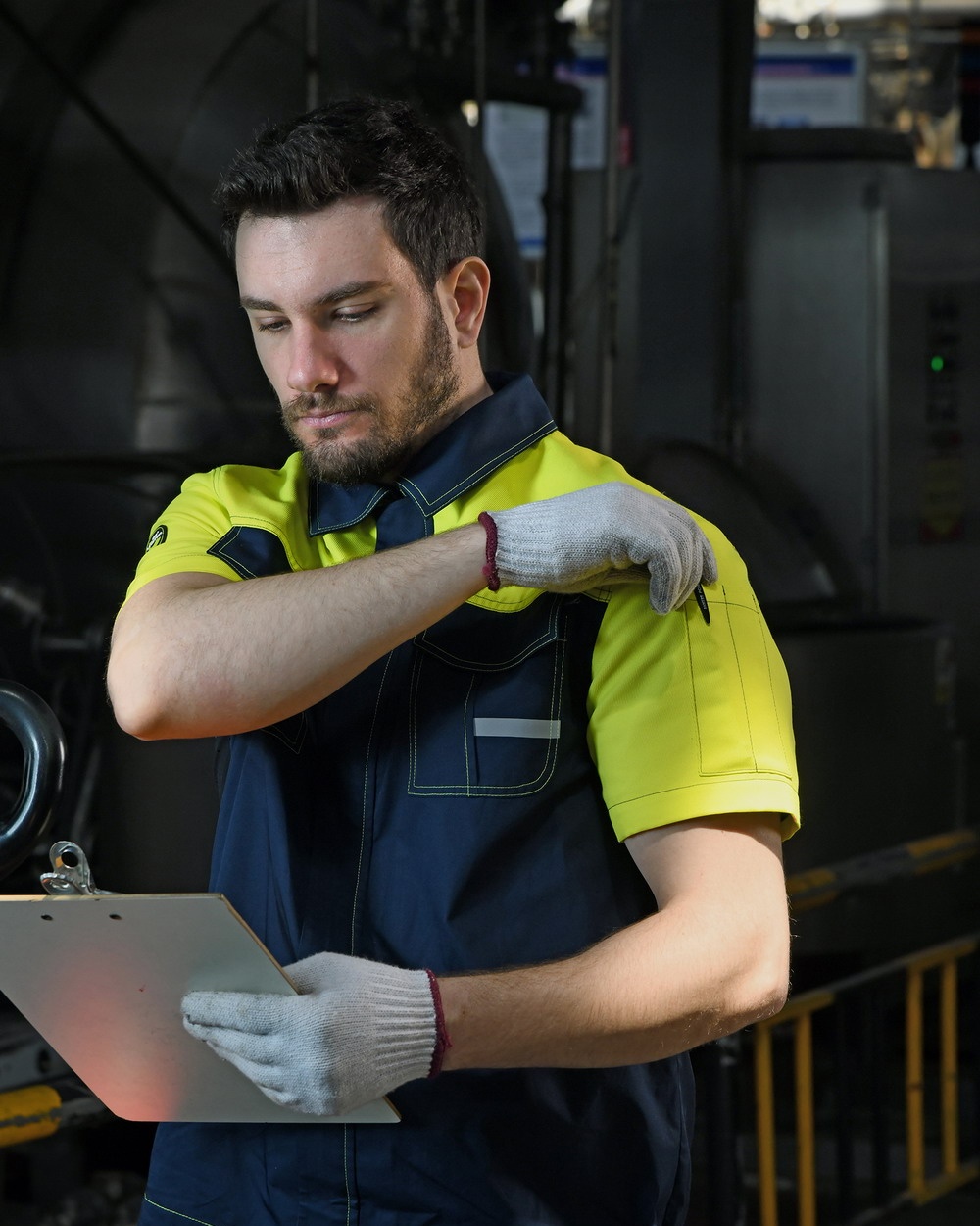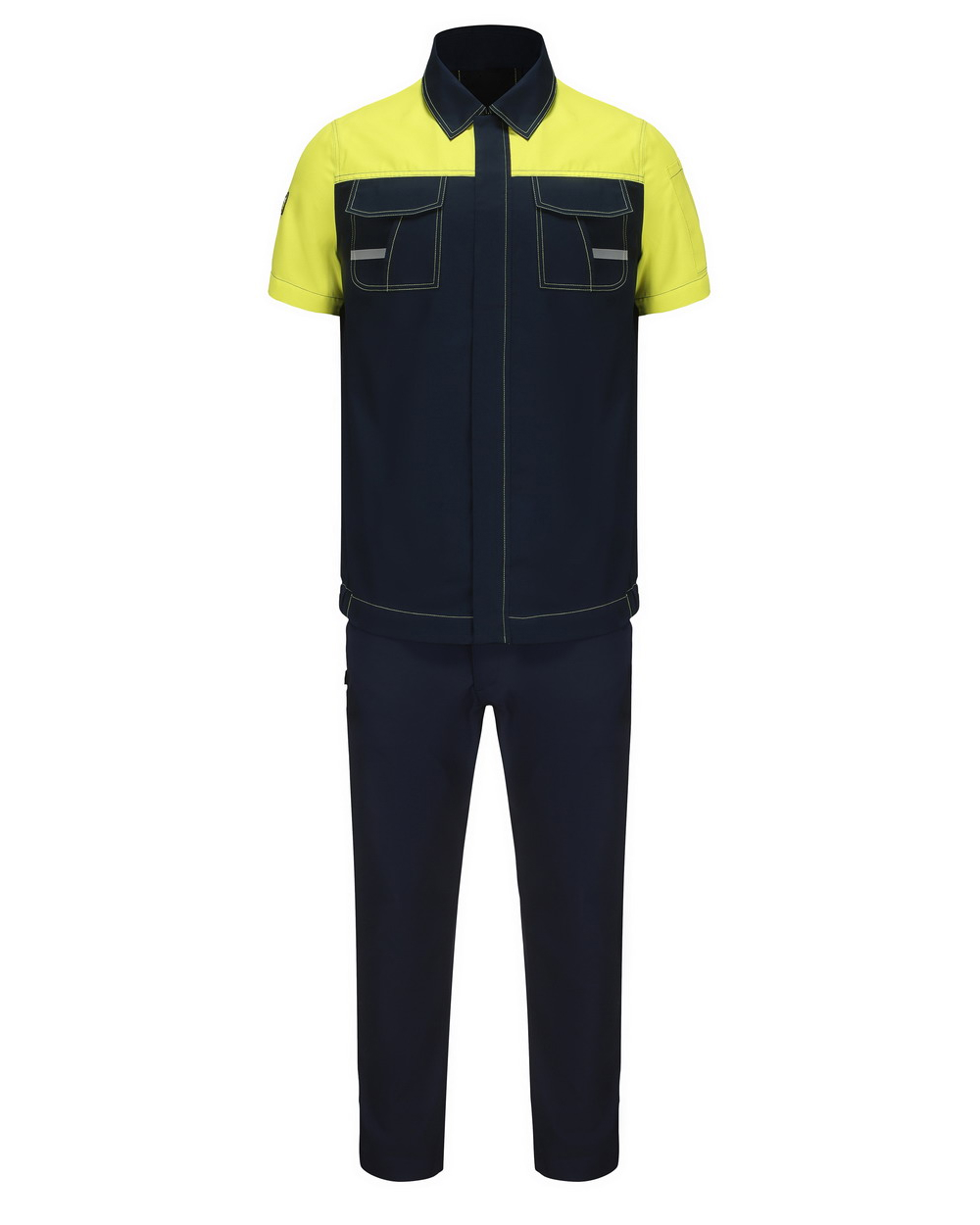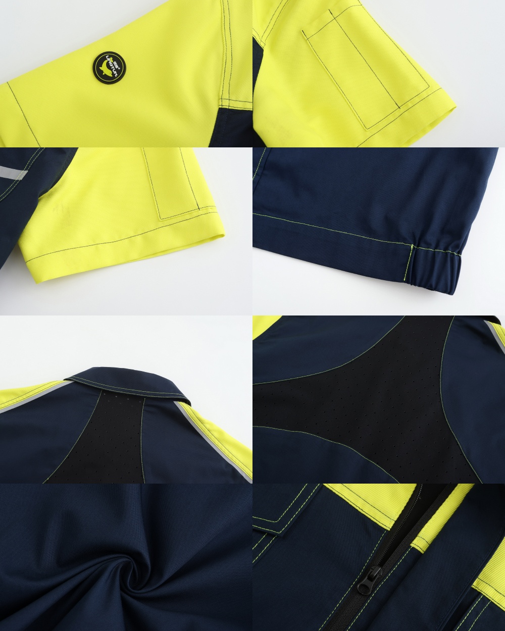 2. 3M reflective strips on shoulders and chest; Contrast-color lapel design adds a modern, stylish edge; Twin flap chest pockets and a sleeve pocket meet daily work needs; 3D sleeve label for a refined look