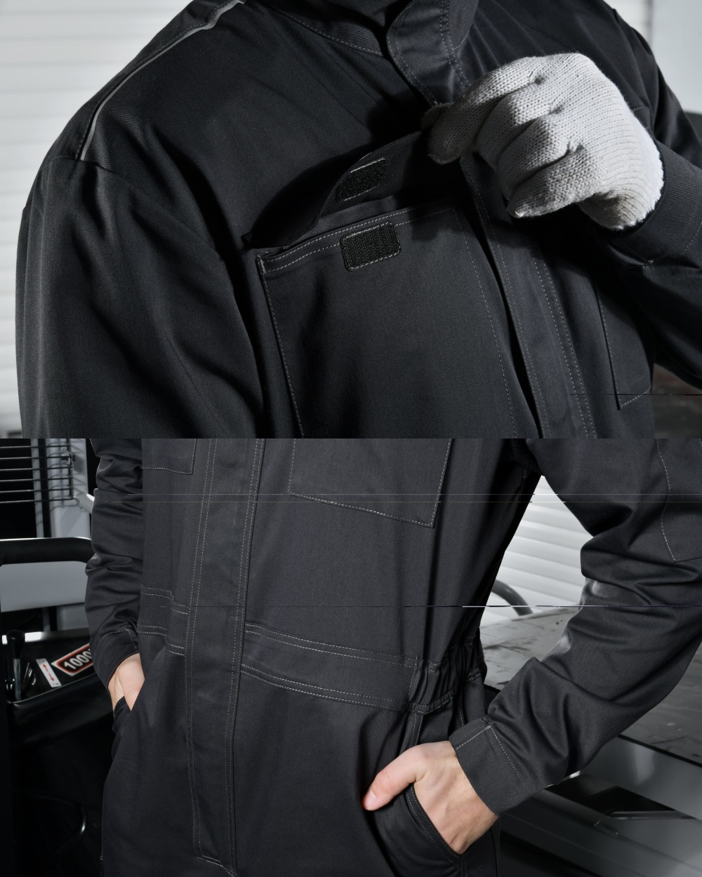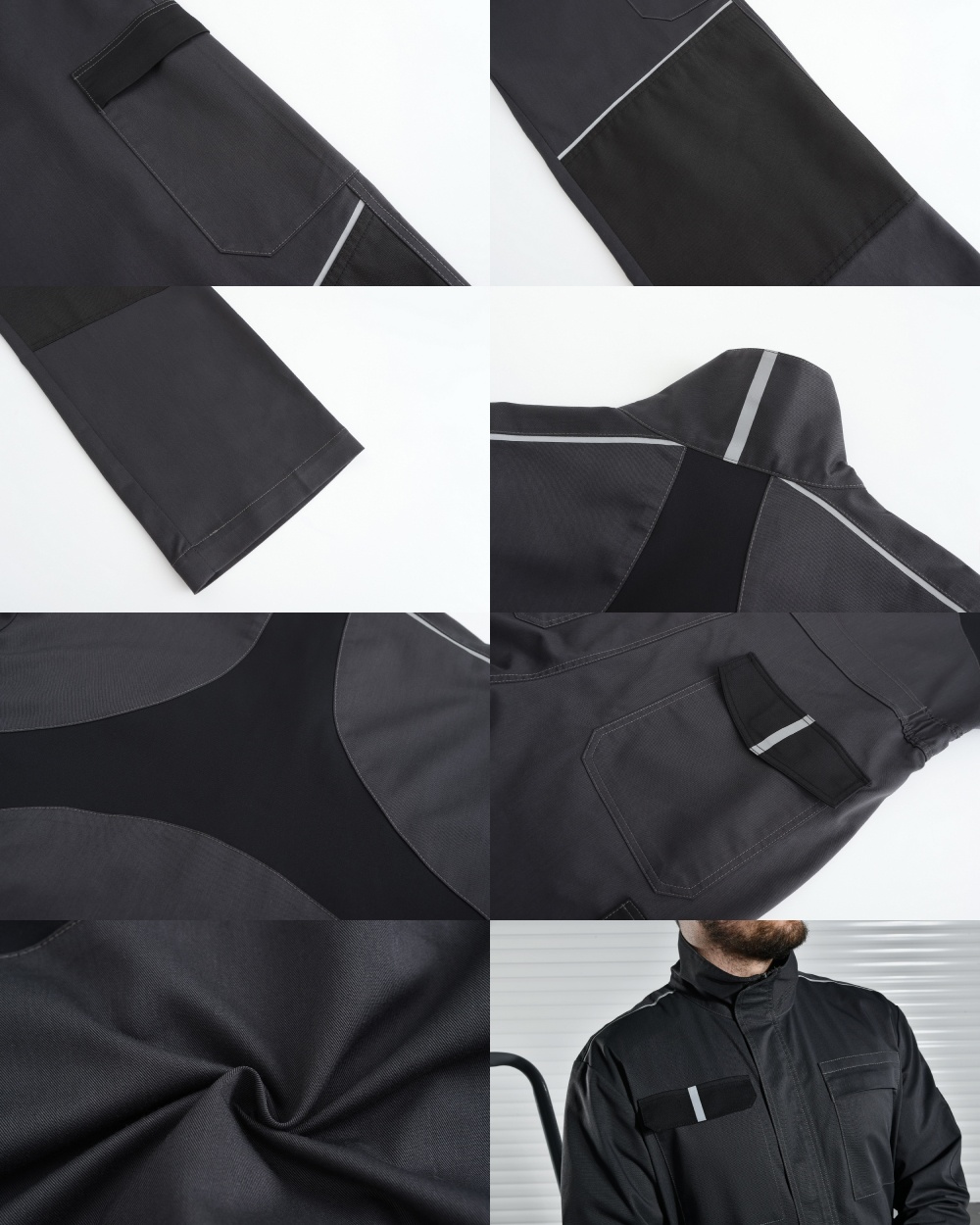 2. 3M reflective strips on shoulders, chest, back neck, and knees for safety; Ribbed cuffs and black elastic waistband offer easy adjustment and a secure fit; Large flap chest pocket and sleeve pocket designed to meet work demands.