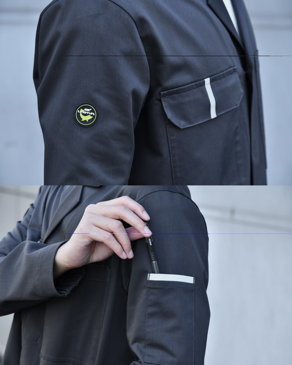 2. 3M reflective strips on the chest and arms; Asymmetrical double chest pockets, a sleeve pocket, and a 3D rubber label for a stylish yet functional design; Half-elastic cuffs allow easy adjustment and comfortable wear.