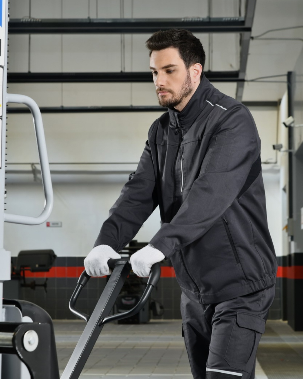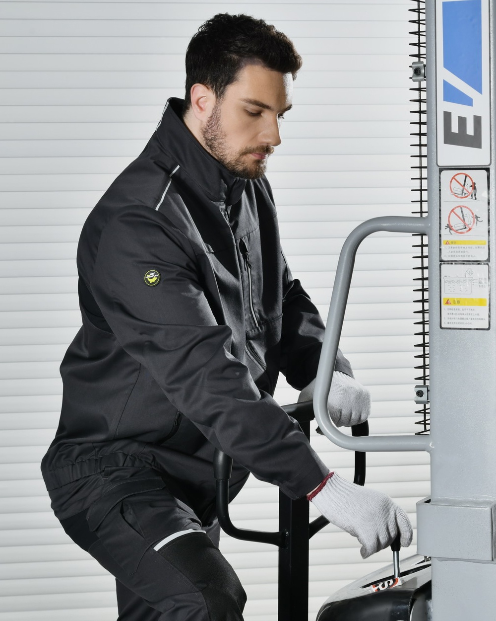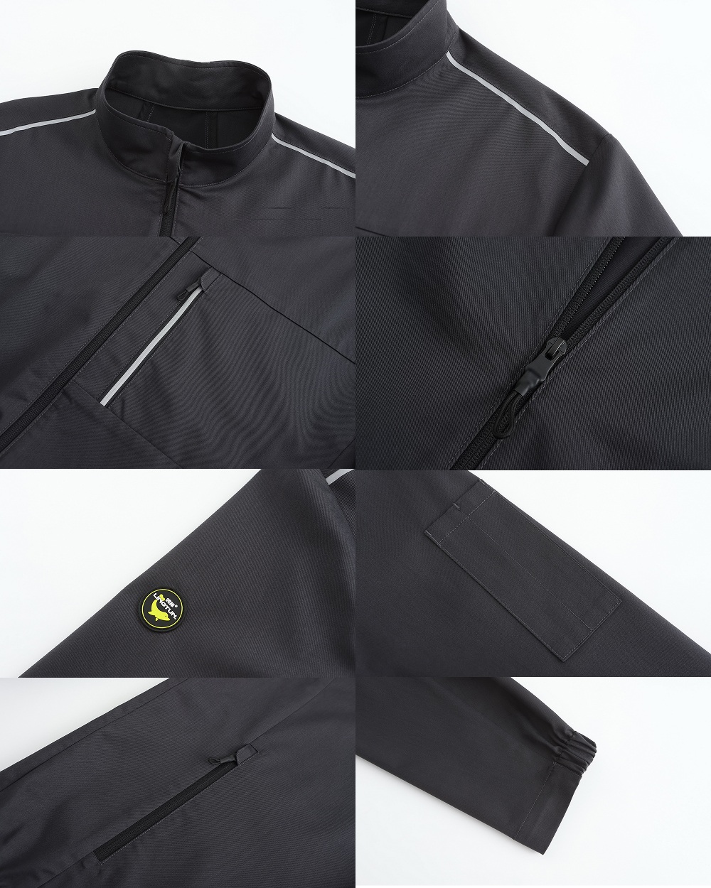 2.3M reflective strips on shoulders,chest and black neck; Elasticated cuffs and hem allow for easy adjustment; Features a chest pocket, two front-side pockets, and a sleeve pocket—designed to meet work needs.