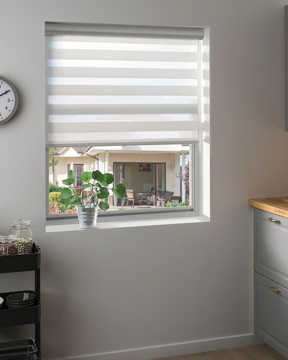 This double roller blind is easy to pull down and push up. You can also adjust both the light and transparency level from sheer to private in a flash.