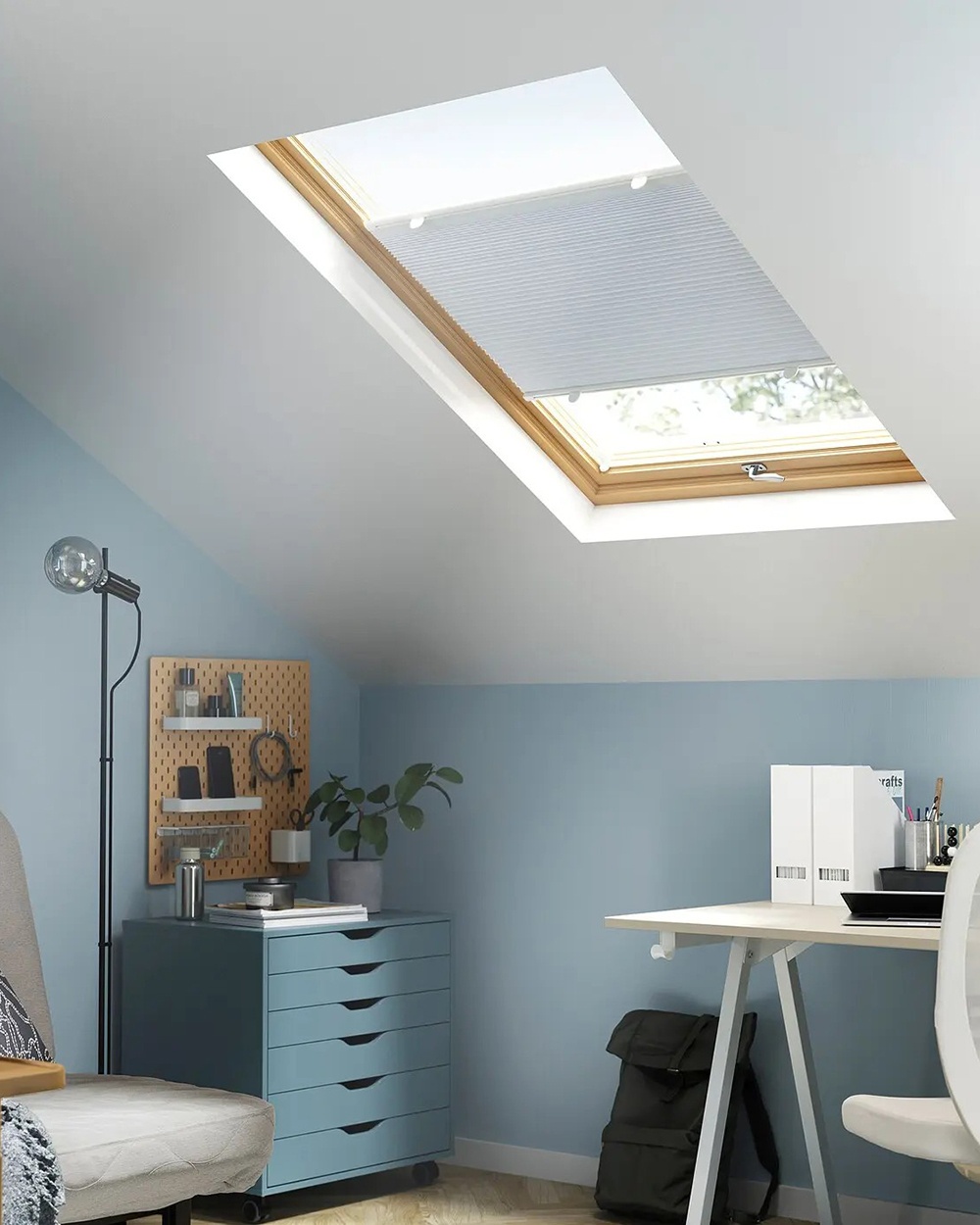 This pleated blind can be mounted in any way to block out light from the moon, sun or street lamps. Pull from top to bottom or from bottom to top – or just cover a section in the middle of the window