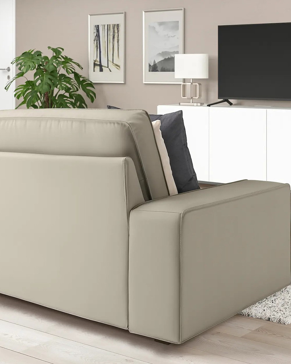 The removable cover is made of a soft, smooth and PU-coated fabric that looks like leather.