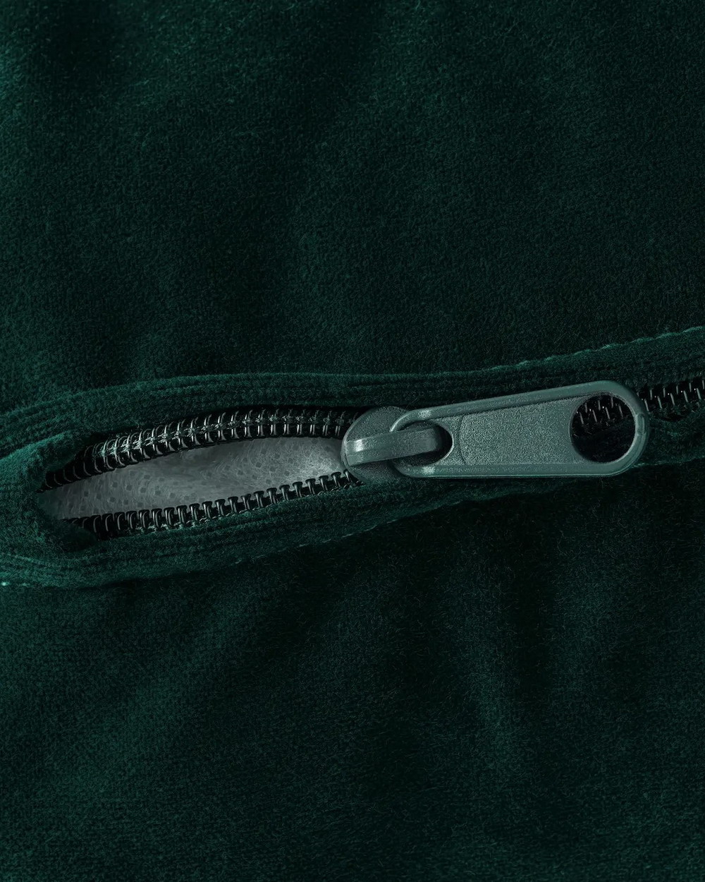 This cover is made of velvet which, through a traditional weaving technique, gives the fabric a warm, deep colour and a soft surface with a dense pile and light, reflective shine.